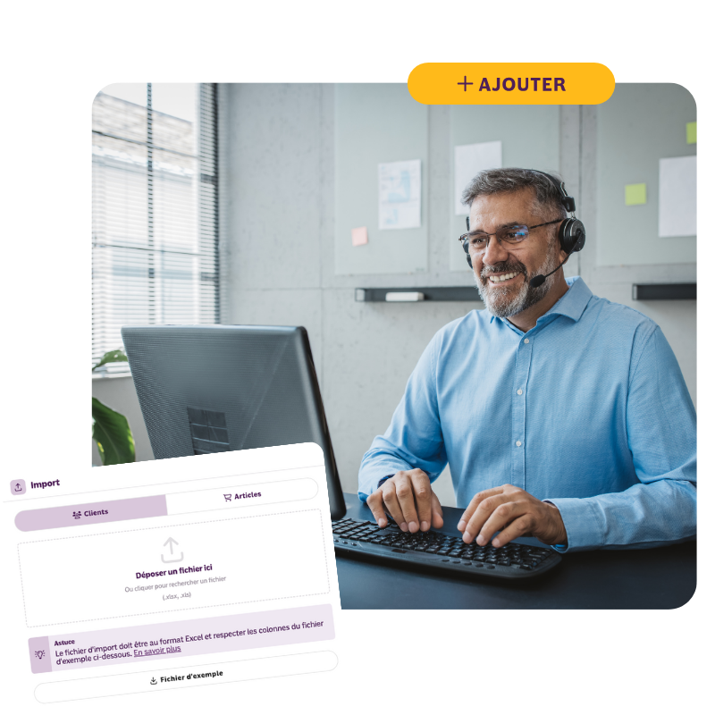 Avec le logiciel de facturation en ligne INFast, vous importez votre propre base de données soit depuis votre fichier client (au format CSV ou Excel), soit directement depuis votre CRM en utilisant l’API INFast. Si besoin, nous sommes là pour vous aider. Vous pourrez ensuite la compléter et la modifier au fur et à mesure si nécessaire.