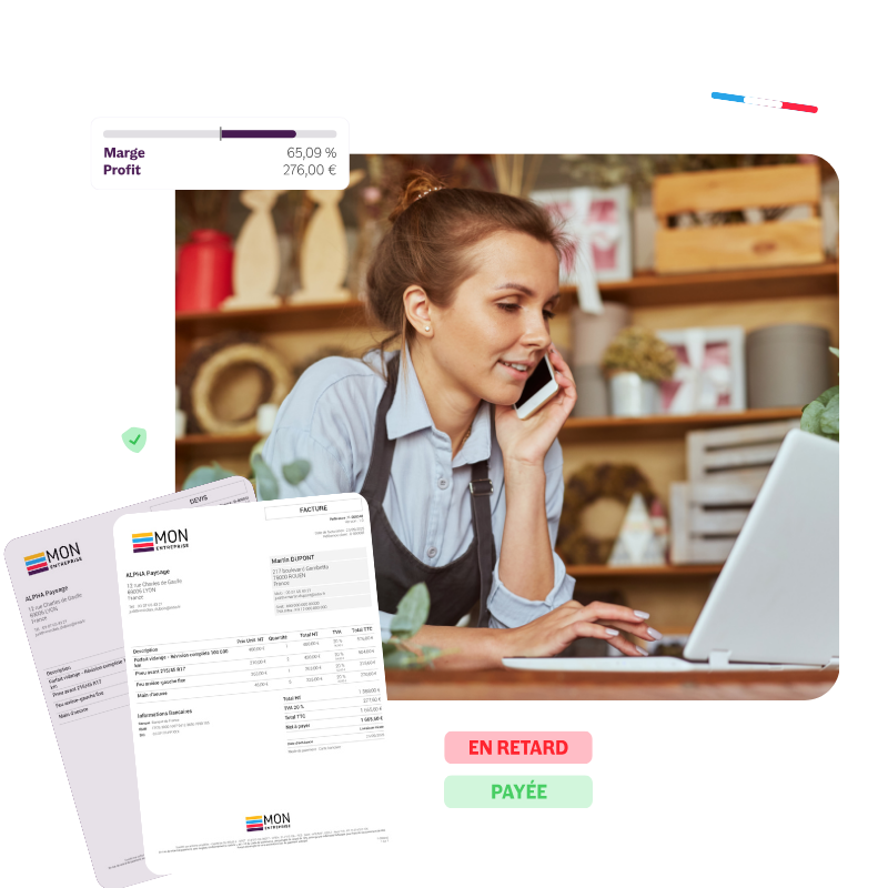 Pas besoin de connaissances en gestion ou comptabilité. Chiffrez vos devis et facturez en 1 clic avec ou sans TVA grâce à une interface intuitive et un accompagnement illimité. + 3h gagnées par semaine dans la gestion de vos devis et factures.