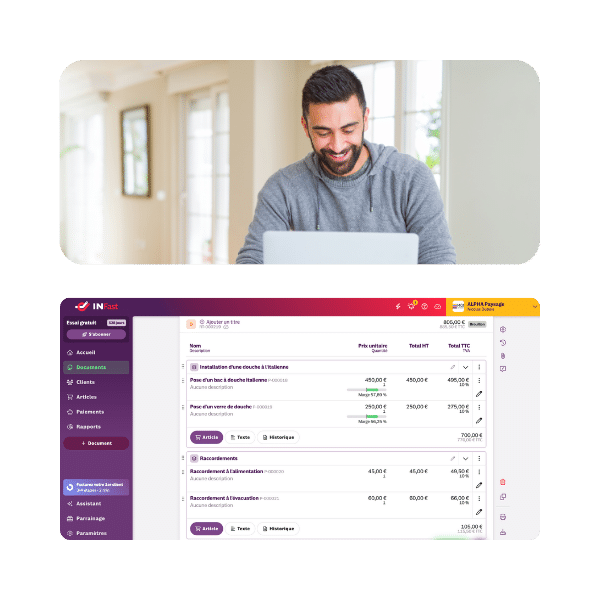 Oui. INFast a été pensé pour les artisans, notamment les professionnels du bâtiment et de la plomberie. L’interface est intuitive, guidée et sans jargon technique. Vous pouvez créer vos premiers devis et factures dès le premier jour, sans formation complexe.