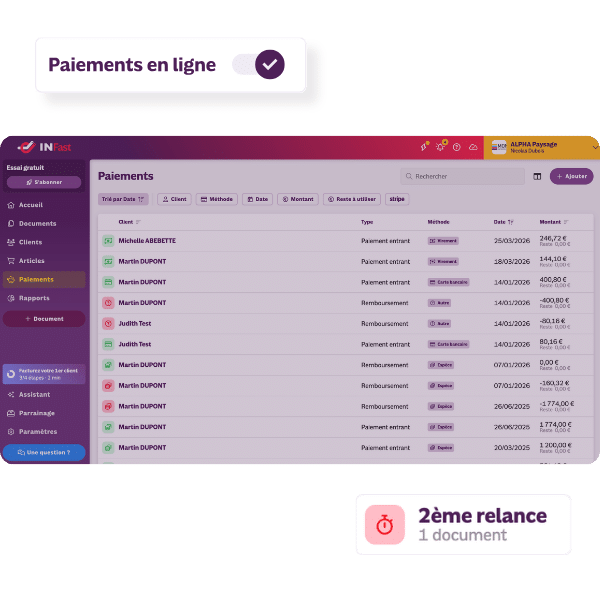 Bien entendu. INFast vous permet de suivre en temps réel les factures payées, en attente ou en retard, chantier par chantier. Vous pouvez également envoyer des relances en un clic pour éviter les oublis et être payé plus rapidement.